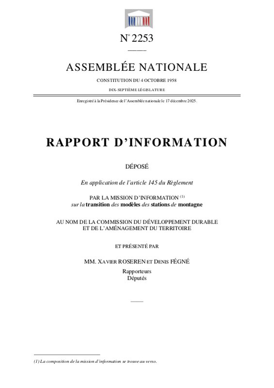 Malgré leur première place au niveau européen, les stations de ski françaises connaissent des difficultés économiques liées à des cas de concurrence déloyale. Un rapport parlementaire en fait un bilan et propose des mesures allant de l'évolution de la réglementation touchant les constructions au renforcement des contrôles sur les métiers de moniteur de ski ou de chauffeur VTC.